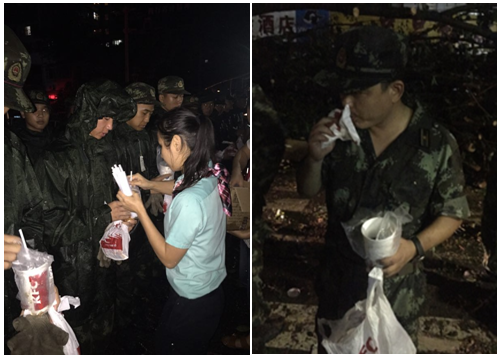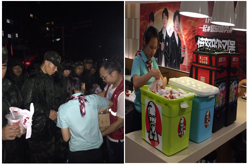 8月23日,超強(qiáng)臺(tái)風(fēng)“天鴿”襲擊珠海,造成部分地區(qū)交通受阻、停水停電。珠海肯德基連夜趕制大批餐點(diǎn),風(fēng)雨中給奮戰(zhàn)在搶修一線的武警官兵和市政工作人員等送去熱氣騰騰的食物,表達(dá)慰問(wèn)和感謝。