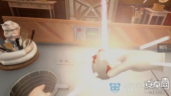 \u00A0 不過, KFC 的 \u00A0 VR訓(xùn)練有些奇怪。它沒有模擬真實(shí)的炸雞場(chǎng)景,而是有些像恐怖的“密室逃脫”游戲。在整個(gè)過程中,“兇神惡煞”的山德士上校還會(huì)一直對(duì)著你說: