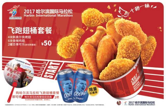 哈爾濱馬拉松飛跑翅桶套餐僅限肯德基花圃餐廳、肯德基假日餐廳、肯德基中央大街餐廳、肯德基友誼餐廳參加,9:30-23:00供應(yīng)。其他肯德基餐廳不參加此活動(dòng)。具體情況以餐廳公示為準(zhǔn)。