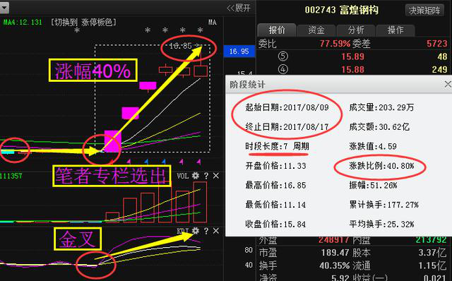 富煌鋼構(gòu)前期股價(jià)跟同濟(jì)科技有點(diǎn)相似,股價(jià)沒怎么上漲,一路橫盤震蕩,但是看到主力卻在偷偷吸籌,在8月9號(hào)的時(shí)候,志文看到主力搶籌完畢,趨勢出現(xiàn)金叉,當(dāng)時(shí)就在朋友圈中發(fā)文講解,之后連續(xù)出現(xiàn)了3個(gè)漲停,截止目前7個(gè)交易日漲幅超過40%。那么這里也是恭喜那些抓住了這2只股票的粉絲朋友,成功把握了其中的利潤。