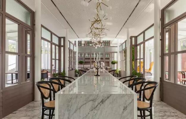 對(duì)面窗外茶室,空間布置素雅而不失格調(diào),整個(gè)茶室的光線與室外陽(yáng)光互相補(bǔ)充,多樣化的光線產(chǎn)生了戲劇化的效果,每分鐘都平添新意。