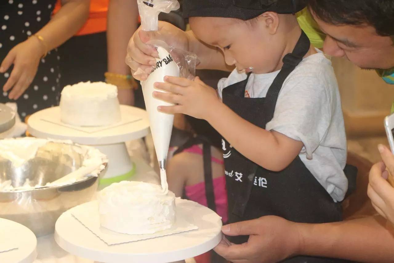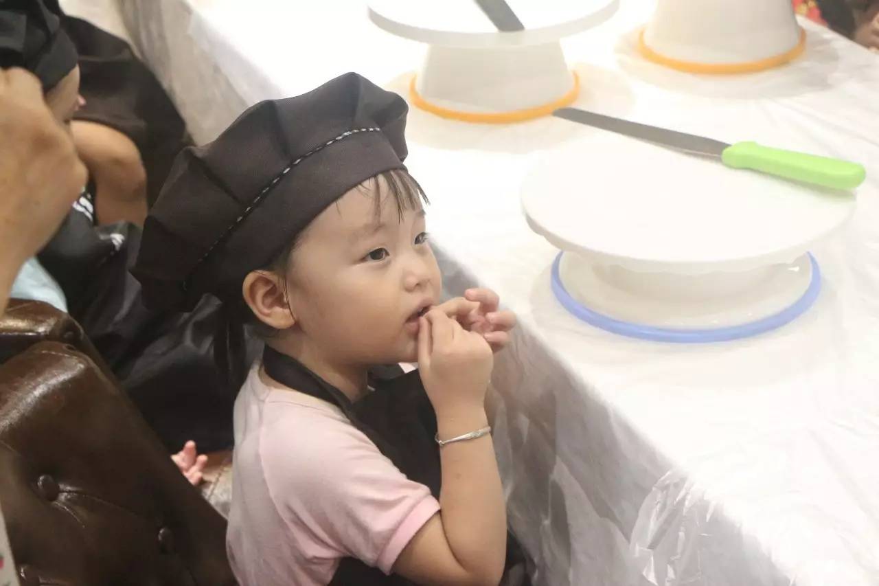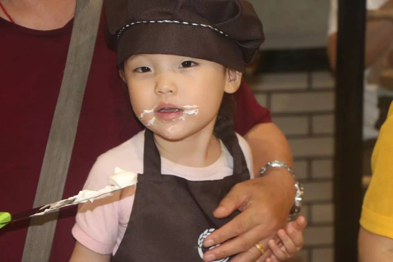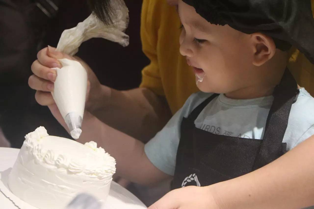 聽完了好聽的故事,接下來就是親手做蛋糕了,在烘培師的示范后,小朋友們在爸爸媽媽的幫助下,各個(gè)做的有模有樣