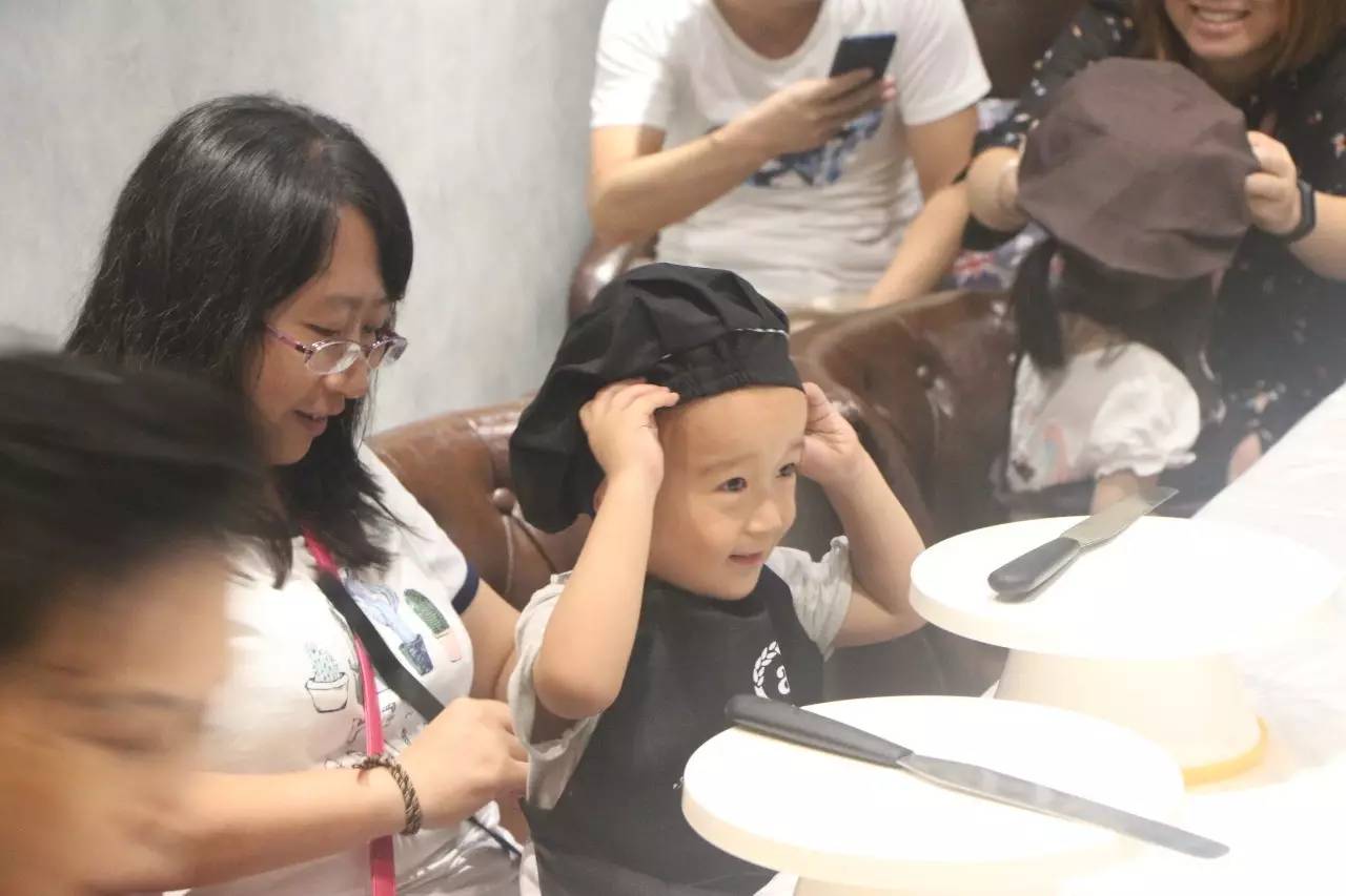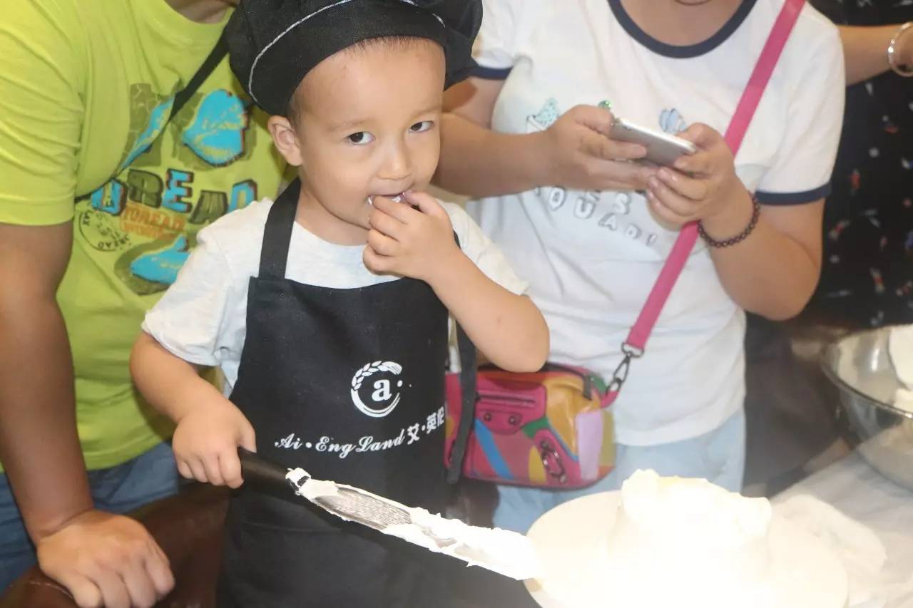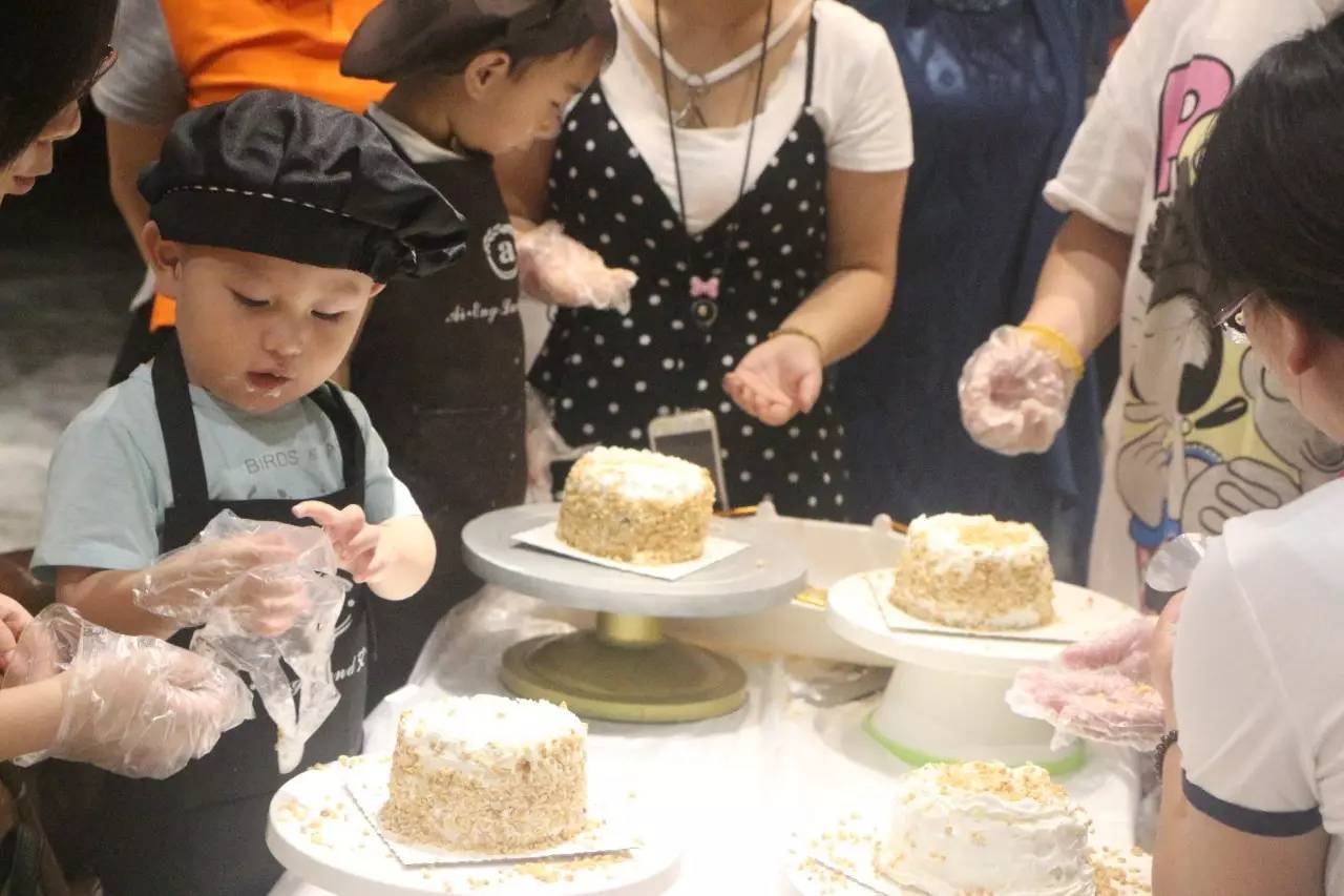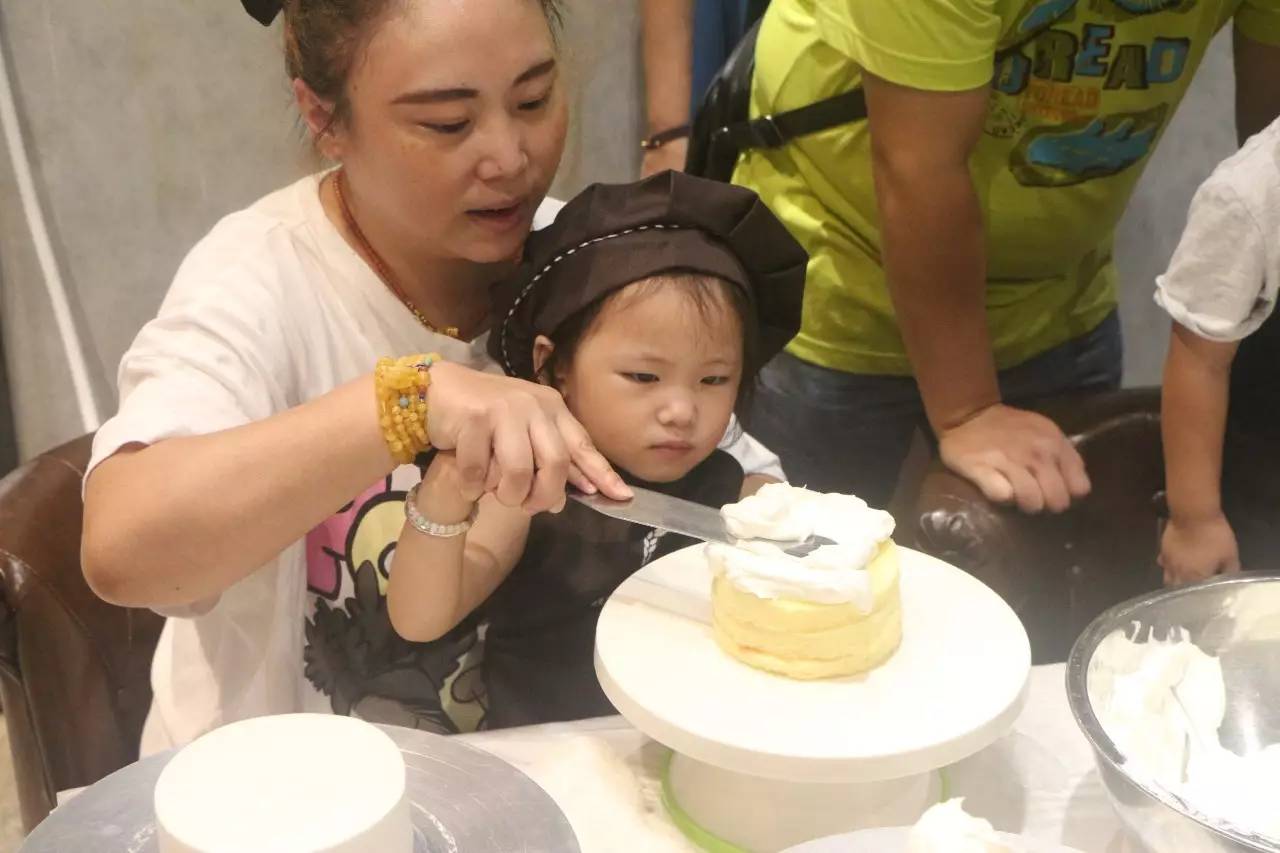 聽完了好聽的故事,接下來就是親手做蛋糕了,在烘培師的示范后,小朋友們在爸爸媽媽的幫助下,各個(gè)做的有模有樣