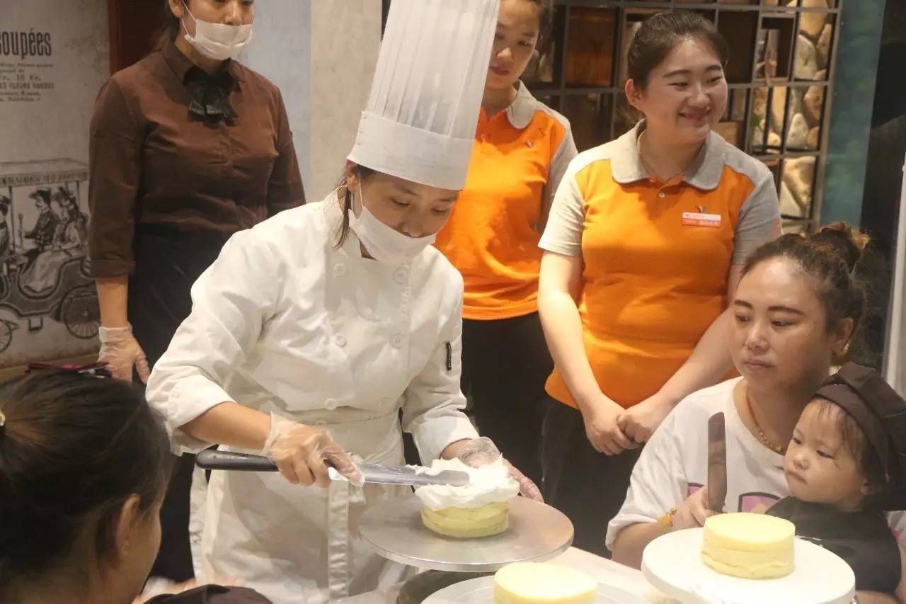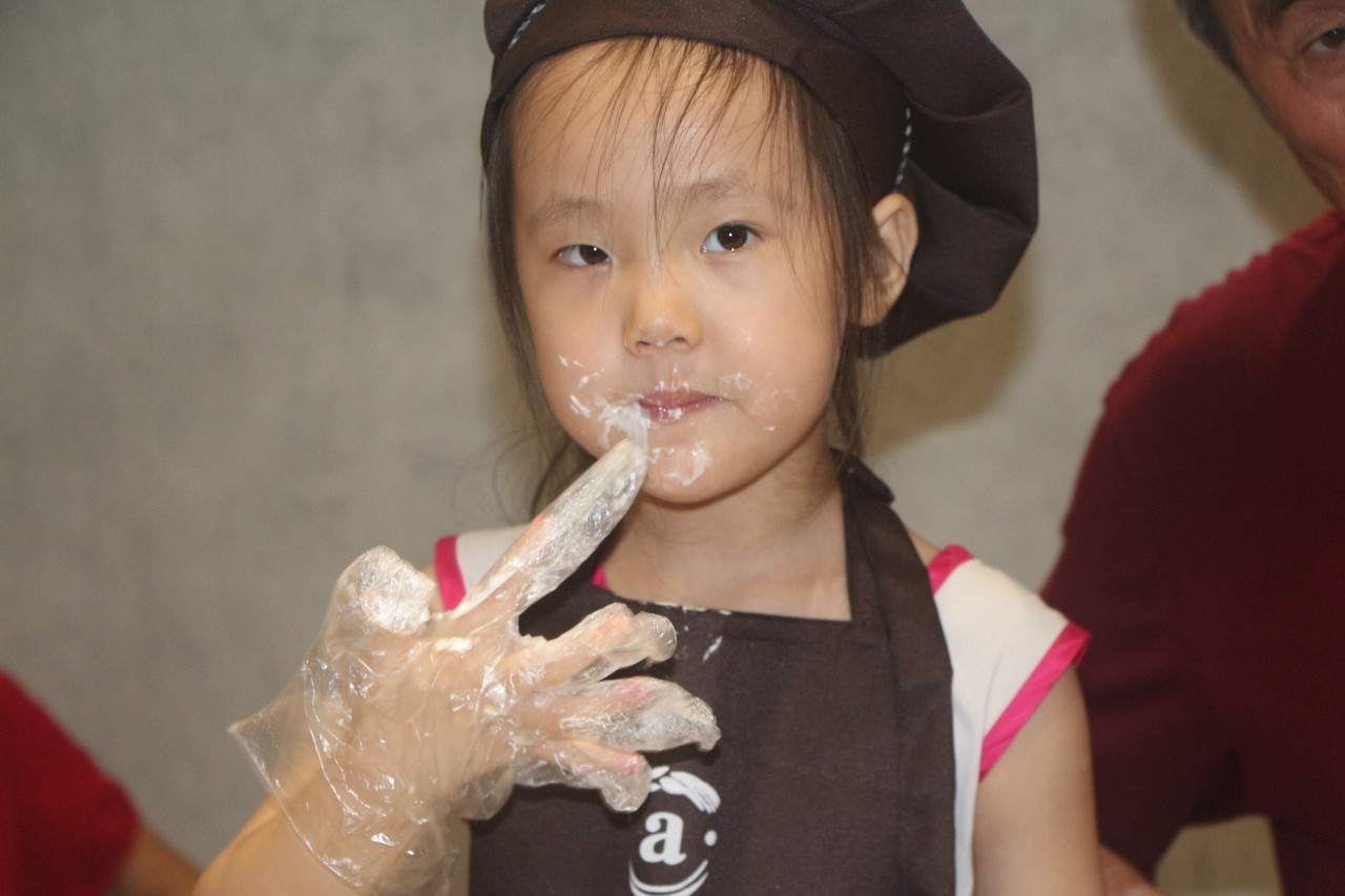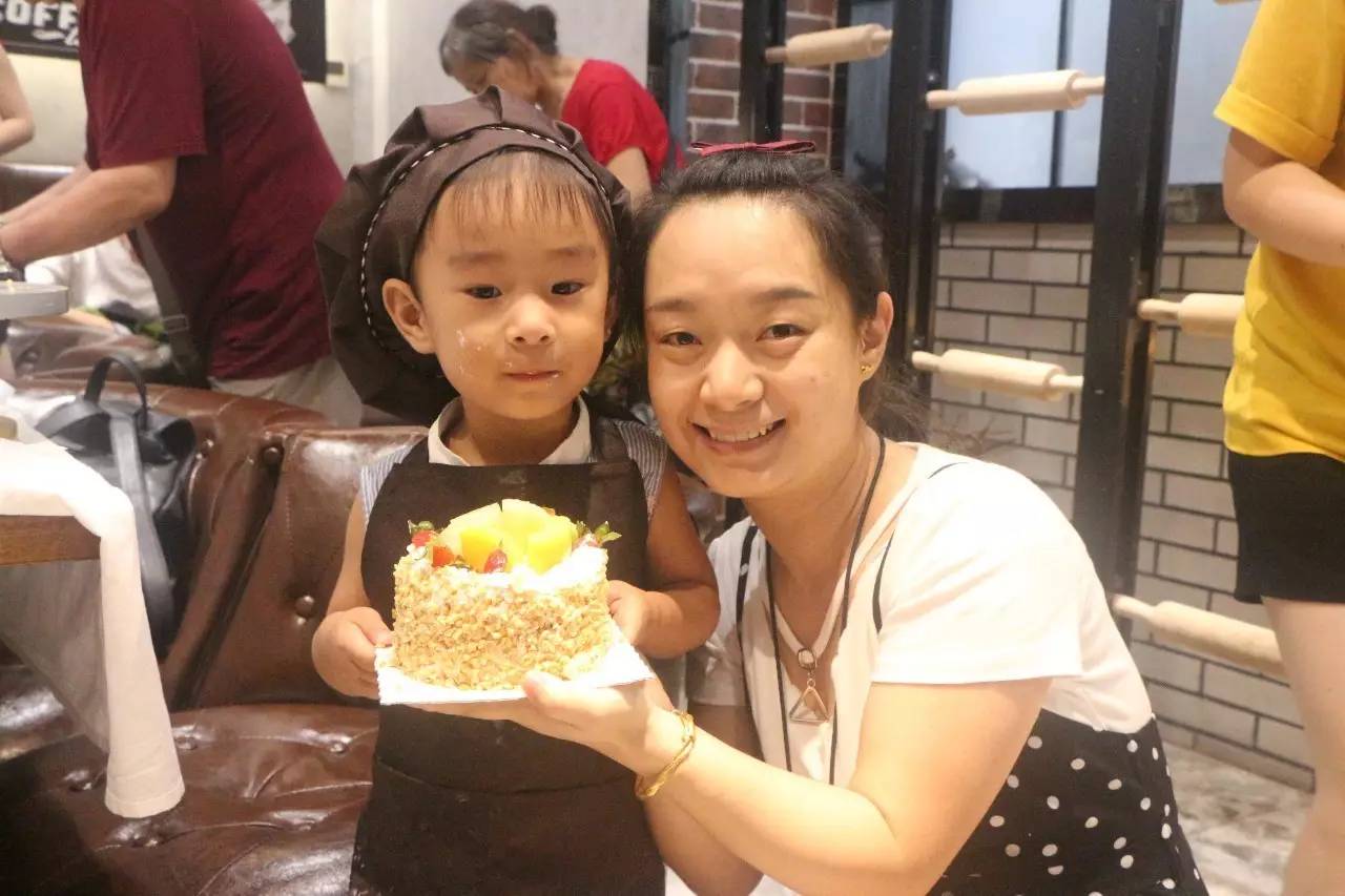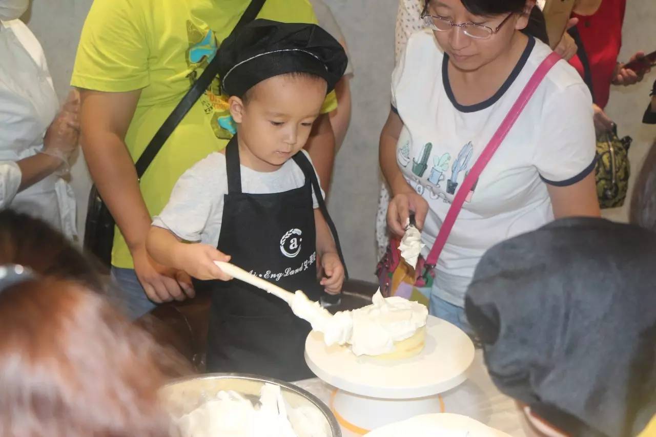 聽完了好聽的故事,接下來就是親手做蛋糕了,在烘培師的示范后,小朋友們在爸爸媽媽的幫助下,各個(gè)做的有模有樣