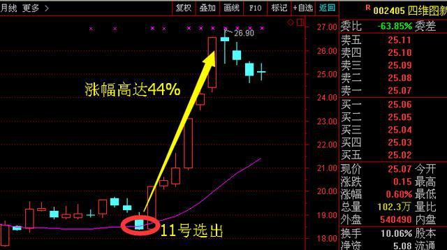 本月11號我在朋友圈通過回調(diào)低吸的選股思路給大家講解的四維圖新,自講解之后,一路大漲,6個交易日時間漲幅高達44%。當時很多人看到朋友圈文章,抓住了機會,現(xiàn)在應(yīng)該都是抓住不錯的收益了。機會有很多,下周行情會產(chǎn)生更多漲停股,要提前準備。今天我同樣是用回調(diào)低吸的選股思路選出有望從底部起漲的強勢利好個股,走勢圖如下: