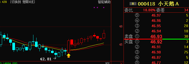 今天文軒還是抽空給大家用一分鐘選股法選出來了一只底部有資金進場極具投資價值的黑馬股:小天鵝A(000418)