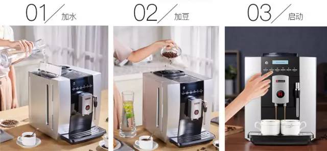 歷經(jīng)虹吸式——滴漏式——半自動——全自動——全自動意式,海氏的HC10一步升級到位,5.0時代的新型咖啡機(jī),待水箱加水、豆盒內(nèi)加入咖啡豆,一鍵選擇,全自動快速磨豆、加熱水箱、高壓萃取,40S即可喝上口感醇正的現(xiàn)磨意式咖啡。