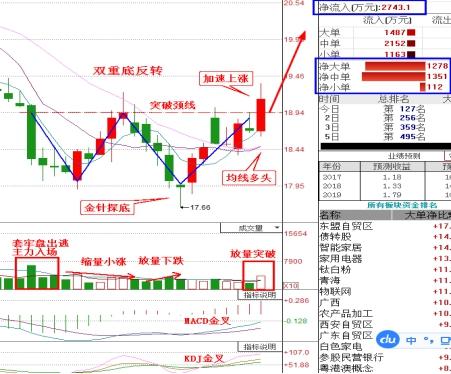 該股股價(jià)下跌到15年底部受到支撐,形成雙重底反轉(zhuǎn)。其中左肩放量下跌,說明套牢盤割肉出局,那么散戶敢在大跌中買入嗎?當(dāng)然不敢,明顯是主力在打壓吸籌。而且在上漲時(shí)縮量,在下跌時(shí)放量,明顯有大資金在邊建倉邊洗盤,并且主力高度控盤。在最低價(jià)17.66元形成金針探底,是主力盤中打壓股價(jià)有快速拉回形成的向下試盤,測試底部支撐強(qiáng)度。現(xiàn)在股價(jià)放量大陽線突破雙重底頸線,并且MACD和KDJ金叉,20日線拐頭向上,均線多頭,說明突破有效,上升趨勢形成。此股已經(jīng)發(fā)布在安安的專欄了,并且會(huì)給出詳細(xì)的布局思路,想要抓住的粉絲朋友可以直接添加安安薇釁呺:ghaa58或qq:932058005查閱學(xué)習(xí)!