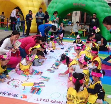 本屆孩子王童樂(lè)會(huì)同樣延續(xù)了以往舞臺(tái)匯演與現(xiàn)場(chǎng)親子互動(dòng)、體驗(yàn)游樂(lè)相結(jié)合的方式,讓親子家庭不僅可以欣賞到小朋友為市民帶來(lái)的精彩演出,父母與孩子一起共同在孩子王的童樂(lè)王國(guó)里做一天的“孩子王”。在孩子王童樂(lè)會(huì),父母帶著孩子一起在畫(huà)卷上作畫(huà),小一點(diǎn)的寶貝參加小寶競(jìng)技場(chǎng)參加爬爬賽。
