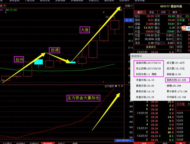 【德創(chuàng)環(huán)保】這只股票也是我在8月12號(hào)分享給大家的,相信很多朋友都把握住這波機(jī)會(huì)了,從圖中可以看出這只股票前期一波拉升后開(kāi)始回調(diào),然后就大漲了這就是典型的上升回檔形態(tài),而且主力資金也是大量的在加倉(cāng),在短短十多天漲幅就高達(dá)42%,像這樣有主力資金進(jìn)場(chǎng)的股票風(fēng)險(xiǎn)是很小的,像這樣有主力資金大量加倉(cāng)的牛股還有很多,今天我在給大家分享一只有主力資金大量加倉(cāng)的牛股|: