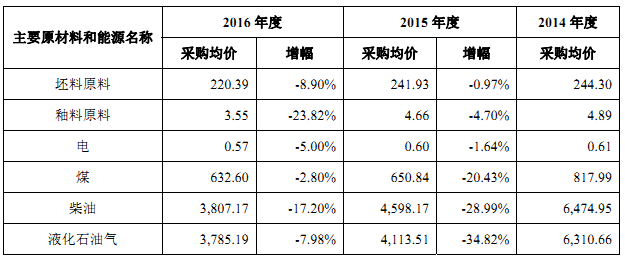 根據(jù)招股書顯示,2014年到2016年,蒙娜麗莎的原材料采購價格持續(xù)下降,單年最大下降幅度高達34.82%。