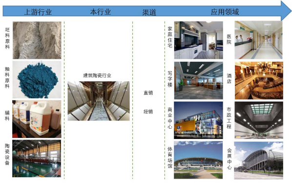 蒙娜麗莎上游行業(yè)包括礦物原料、釉原料的原材料開采及加工業(yè)、各類輔料的生產(chǎn)制造和陶瓷加工設備,下游行業(yè)為建筑裝修裝飾。
