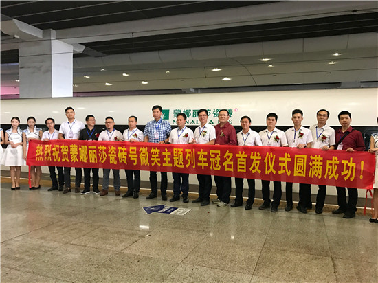 8月28日上午,“微微一笑很傾城”蒙娜麗莎瓷磚號微笑主題列車冠名首發(fā)儀式在廣州南高鐵站隆重舉行。蒙娜麗莎集團(tuán)副總裁鄧啟棠、江蘇永達(dá)高鐵傳媒有限公司副總裁湯斯以及廣州鐵路集團(tuán)文化廣告總公司副總經(jīng)理葉湘林出席了本次活動。出席本次活動的還有蒙娜麗莎經(jīng)銷商代表們以及全國10余家知名行業(yè)媒體人。
