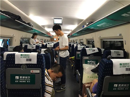 外車身彩貼、車廂海報、小桌板、頭枕巾、行李架彩貼,語音冠名全列媒體壕氣包車,定制甜蜜七夕。蒙娜麗莎為車上的旅客準(zhǔn)備了百余份的巧克力和鮮花還有手搖扇、圍裙、雨傘以及定制瓷板畫禮盒的驚喜大獎。不論你是集體撒狗糧的甜蜜情侶還是驕傲的單身貴族都能讓你這這趟旅途中收獲滿滿的驚喜!“這個七夕你打算怎么過?的互動問答環(huán)節(jié)瞬間點燃全車人的參與感與傾訴欲,單身汪們表示一個人也要過得精彩,更有一個個平凡而又甜蜜的愛情故事讓這趟旅途甜蜜十足,整列車廂都彌漫著幸福的氣息。更有美女網(wǎng)紅們助興現(xiàn)場直播,引發(fā)線上線下互動高潮。情侶們的親密合影引發(fā)全場歡呼,主持人送上玫瑰花和巧克力禮盒助興讓這股甜蜜進(jìn)行到底!最后全車微笑合影記錄下這珍貴的歡樂時光。