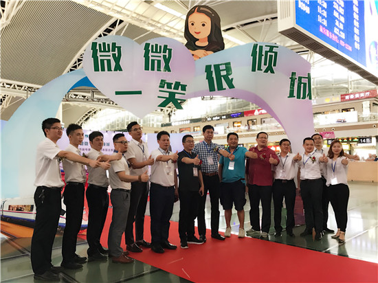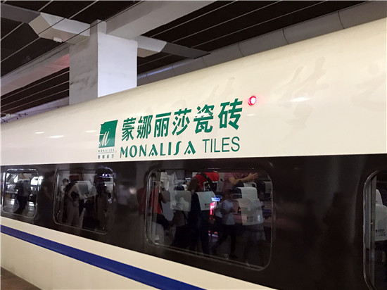 首發(fā)儀式上蒙娜麗莎集團(tuán)副總裁鄧啟棠先生為活動致開場辭,鄧總提到,中國高鐵是國家的一張名片,代表了中國創(chuàng)作、中國制造、中國速度,蒙娜麗莎也是以制造、創(chuàng)造、創(chuàng)新為發(fā)展方向,希望兩個行業(yè)領(lǐng)頭羊的合作能起到標(biāo)桿作用。鄧總也向廣大旅客發(fā)出邀請,歡迎大家乘坐蒙娜麗莎“微微一笑很傾城”微笑主題專列,帶上好心情快樂出行!