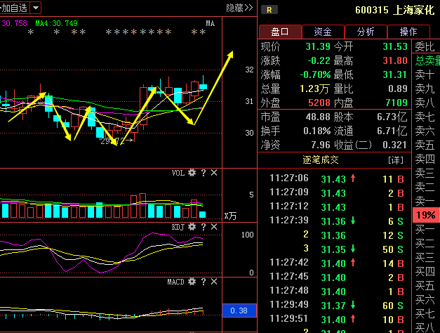 今天雨偌還是給大家?guī)硪恢Ш隈R股,下面來看一下該股目前的走勢情況:上海家化(600315)