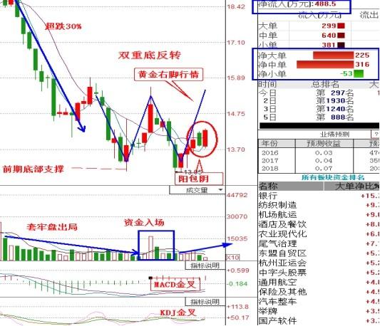 前期該股股價從高位下跌30%形成超跌反彈,在前期底部受到支撐,形成雙重底反轉形態(tài)。其中下跌時持續(xù)縮量,套牢盤割肉出局。而W底的放量小漲小跌說明有主力入場建倉。現(xiàn)在明顯在走W低的右腿上漲行情。目前K線形成陽包陰看漲,macd和kdj金叉,說明上漲趨勢形成。關于此股的后期走勢以及分析,稍后也會在專欄中公布出來,對此方式有興趣的朋友可以到本人專欄中查詢。\u00A0筆者上周在微信發(fā)布的利好股票,本周全部大漲,由于近日大跌其中兩只支僅僅漲幅15%!微信繼續(xù)發(fā)布本周的三只利好股票!需要的朋友可以加股惑私人微信:【zgy340223】或者加股惑QQ:1481848693\u00A0