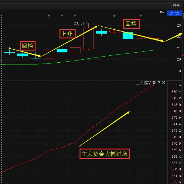 這只股票也是用相同思路選出來的股票,可以看到是一只非常標(biāo)準(zhǔn)的上升回檔走勢股票,那么我為什么看好這只股票呢?其實很簡單,像這只股票的主力資金顯示出大幅進(jìn)場的狀態(tài),這也就表示股價之前的回調(diào)都是主力在進(jìn)行一個洗盤的動作,洗掉了很多不堅定的股民,而且這股的股價每一次回踩之后再次上漲的幅度都比上一次要高,只要股價站穩(wěn)支撐位就是我們低吸的機(jī)會。那么到這里我的講解就結(jié)束了,覺得文章對你有幫助的可以關(guān)注我的哦!