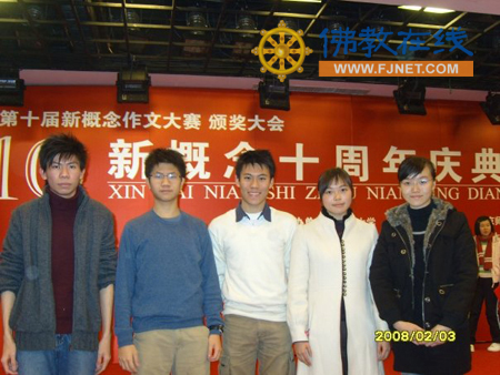 這五位中學(xué)生于2007年10月參加了由內(nèi)地《蔭芽》雜志和香港佛教聯(lián)合會主辦的“全國新概念作文大賽港澳區(qū)首屆比賽”,并在一百多所參賽中學(xué)生中脫穎而出,得到港澳區(qū)一等獎。進(jìn)而于今年2月初遠(yuǎn)赴上海參加總決賽,并獲佳績。