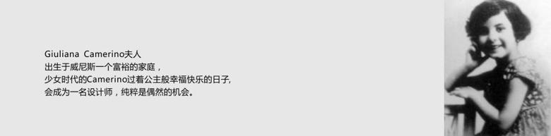 Giuliana Camerino夫人出生于威尼斯一個富裕的家庭,少女時代的Camerino過著公主般幸福快樂的日子,會成為一名設(shè)計師,純粹是偶然的機會。