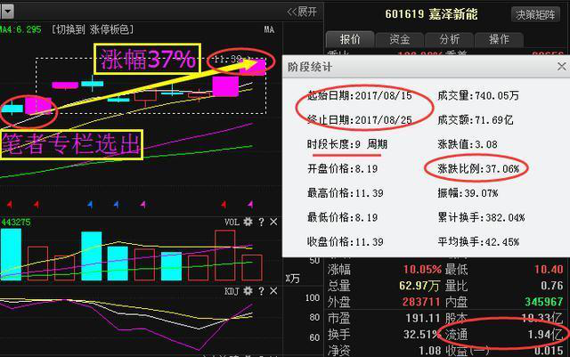 嘉澤新能601619這只次新股,上市開板之后,股價(jià)下跌,主力搶籌,莊家布局,本人8月15號用一分鐘選股法選出了嘉澤新能這只股票,截止目前9個(gè)周期累計(jì)漲幅達(dá)到了37%。如果你在15號那天有幸看到了本人講解,學(xué)習(xí)了本人選股思路成功布局了嘉澤新能的朋友,也是能把握到這波利潤空間。