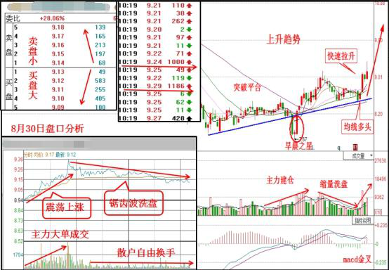 股價(jià)在下跌到底部,沿著上升趨勢線拉升。在底部先不規(guī)則放量,主力小幅吸籌建底倉,之后放量大量主力大量建倉。而且股價(jià)形成“早晨之星”看漲形態(tài)是主力試盤行為。之后打壓洗盤,縮量證明套牢盤減少,籌碼逐步穩(wěn)定。目前價(jià)漲量增,股價(jià)突破前期高,macd金叉,均線多頭排列,證明股價(jià)進(jìn)入加速拉升階段。