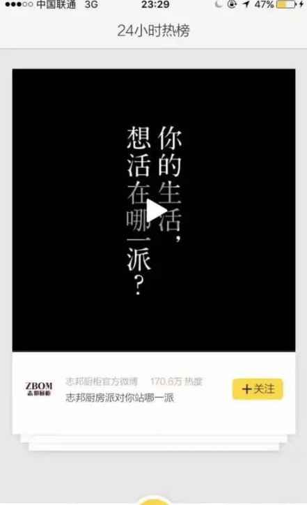 志邦核心視頻登上秒拍視頻24小時(shí)熱搜榜