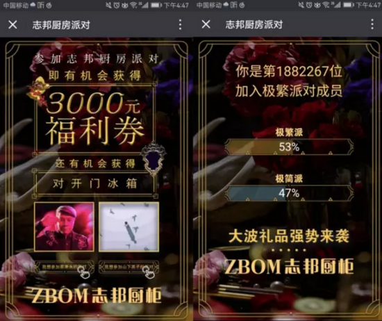志邦以派·對(duì)福利作為吸引,邀請(qǐng)站隊(duì),實(shí)現(xiàn)受眾主動(dòng)參與廚房派·對(duì),進(jìn)而深入了解兩派生活方式,取得了促銷與品牌傳播的雙重效果。流程簡(jiǎn)單,卻輕松為線下門店引流。