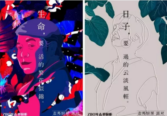 志邦圍繞多個(gè)相同主題,設(shè)計(jì)成極繁與極簡(jiǎn)對(duì)比海報(bào),最大化派別的對(duì)比。完全相反的文字與畫面調(diào)性造成視覺沖突,提升了張力,既快速引發(fā)讀者的好奇與興趣,又深度展示了極繁與極簡(jiǎn)的不同魅力,同時(shí)暗含著志邦的包容性:縱然兩派不同,但都能活出生活滋味。