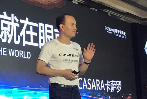 2017年8月8日,由歐神諾陶瓷舉辦的“放眼世界就在眼前”國際風卡薩羅Casara全球上市發(fā)布會在佛山希爾頓酒店震撼揭幕,歐神諾陶瓷董事長鮑杰軍、總裁陳家旺,50多位卡薩羅Casara全球創(chuàng)意者、30多家媒體記者出席盛典、全國近1000名經(jīng)銷商共同出席新品盛典。