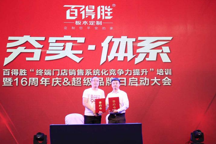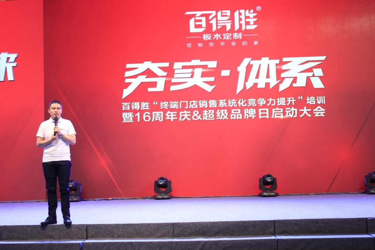 ??2017年6月3日,百得勝16周年慶暨超級品牌日啟動大會在成都召開,同時(shí),百得勝以“好柜配好門”為主題,全國首發(fā)新品美洲實(shí)木柜體,與百得勝此前推出的美洲實(shí)木柜門形成了完整套系。