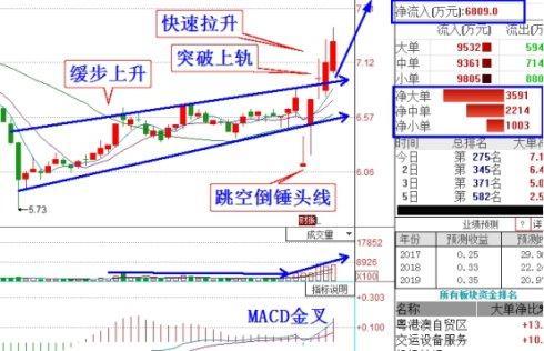 該股股價(jià)前期超跌25%后,在底部緩步上漲,成交量保持地量,說明主力被套,而且高度控盤。出現(xiàn)倒錘頭線,這是主力盤中打壓洗盤,清洗獲利盤和前期套牢盤。果然之后就快速突破上升通道上軌,而且macd金叉,均線多頭排列,說明快速拉升階段來臨。
