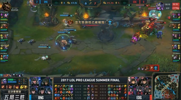 第三局EDG穩住心態,在阻止RNG再次拿到大蟲子的情況下,開始和RNG進行周旋。開局三分鐘廠長利用皇子EQ閃現成功挑飛EZ,iboy小炮立刻閃現在下路拿到EZ的一血。之后長達十分鐘的時間雙方并未爆發戰斗,隨后樂芙蘭和大蟲子組成二人組屢次抓住RNG上單的失誤將其擊殺,并且利用這些關鍵時間在比賽進行到22分鐘的時間成功拿下大龍。站在懸崖邊上的EDG利用大龍穩扎穩打,拔掉了RNG的所有外塔。雖然在后面的第32分鐘,RNG強行打下大龍,不過也付出了團滅的代價,在比賽進行到38分鐘的時候,EDG成功推下RNG主水晶,拿到夏季決賽第一勝,此時比分1比2