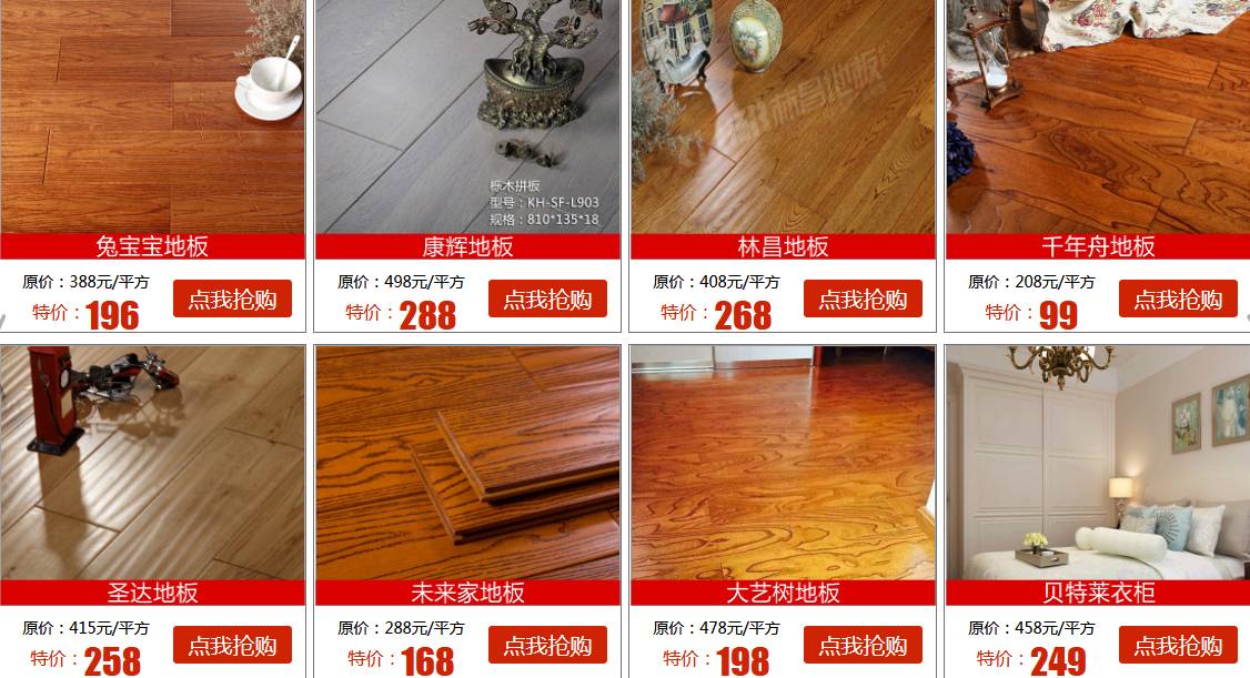 兔寶寶實木仿古地板\u00A0原價388元/平方米特價196元/平方米