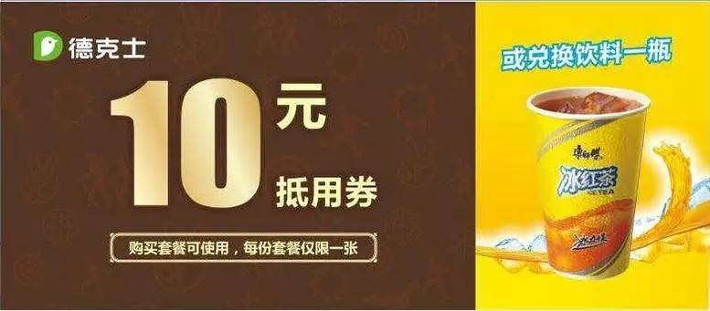 可以拿10元抵用券或免費兌換飲料一份