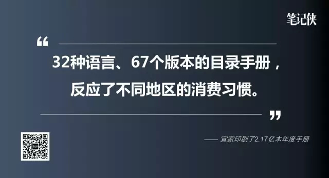 宜家的目錄手冊也起到了類似的作用。32種語言、67個版本的目錄手冊,反應了不同地區的消費習慣。