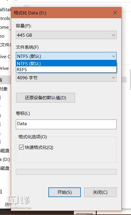 需要說明的是,整個升級過程非常迅速,甚至無需重新啟動計算機,升級后版本顯示:Windows 10 Pro for Advanced PCs,此時可以查看驅(qū)動器格式化選項,已經(jīng)可以格式化為REFS文件系統(tǒng)。