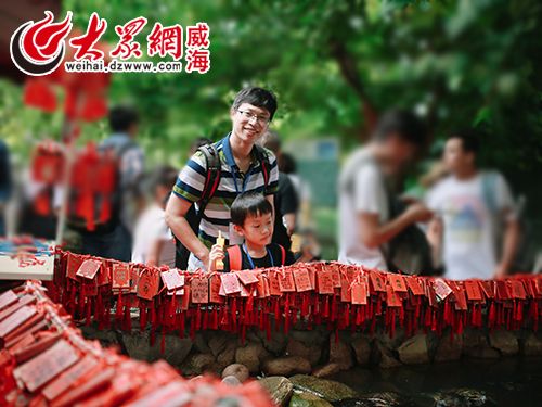 開心的父子倆正打算許愿祈福
