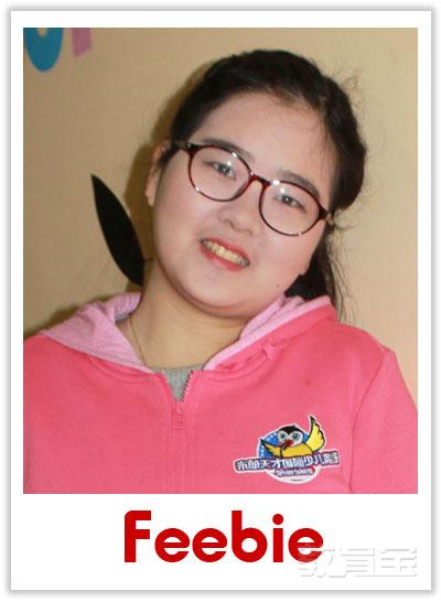 Feebie 布朗英語資深教師 Feebie老師聲音甜美,擁有專業(yè)英語八級(jí),接受過幼少兒英語專業(yè)培訓(xùn),并通過了布朗英語(全球)資深教師崗位培訓(xùn)。對(duì)待孩子她擁有極大的耐心和細(xì)致的觀察力,課堂內(nèi)的互動(dòng)性和參與性很強(qiáng),倡導(dǎo)孩子在快樂的生活中學(xué)習(xí)!