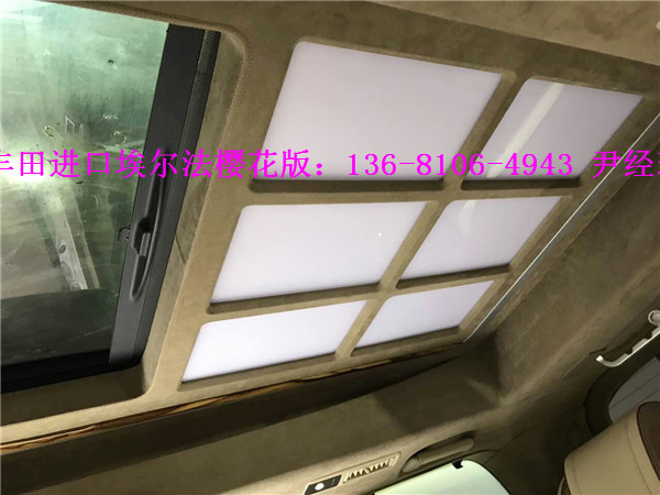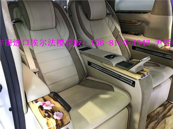 2017款進口豐田埃爾法改裝“蒙娜麗莎”櫻花版私人定制改裝,極致奢華只為你而來。埃爾法改裝“蒙娜麗莎”櫻花版私人定制將埃爾法的奢華潛能再次激發(fā),無論是外觀還是內(nèi)飾,都更加精致細膩,豪氣十足。新款內(nèi)飾做工更加精湛,選材考究,整體風格在奢華之余更顯清新脫俗,有品質(zhì)有格調(diào)。17款豐田埃爾法改裝“蒙娜麗莎”櫻花版也標配了遙控電動雙門,防夾系統(tǒng)、智能鑰匙、一鍵啟動等豪華MPV應有的高端配置。搭載安靜高效的V6動力總成,擁有平順絲滑的駕乘體驗。