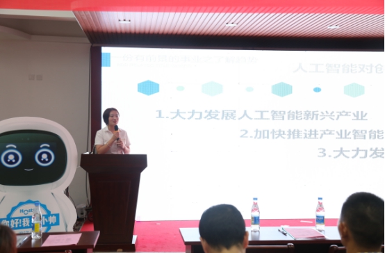 最后,榮事達榮電集團產(chǎn)品講師陳夢婷帶來機器人產(chǎn)品發(fā)布。陳夢婷分析了當下人工智能的前景,從材質、內容、功能、體驗感、售后等等方面介紹了好帥機器人的優(yōu)勢,并介紹了好帥機器人的定制功能,與會人員對機器人表示了濃厚的興趣。