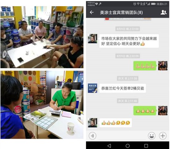 美涂士終端與銷(xiāo)區(qū)的同事們開(kāi)展多場(chǎng)培訓(xùn),并在實(shí)踐中提升客戶(hù)銷(xiāo)售團(tuán)隊(duì)接單能力,親自做“銷(xiāo)售員”為客戶(hù)的導(dǎo)購(gòu)們表率,凝聚、穩(wěn)定客戶(hù)銷(xiāo)售團(tuán)隊(duì),并為客戶(hù)帶來(lái)更多大額訂單。