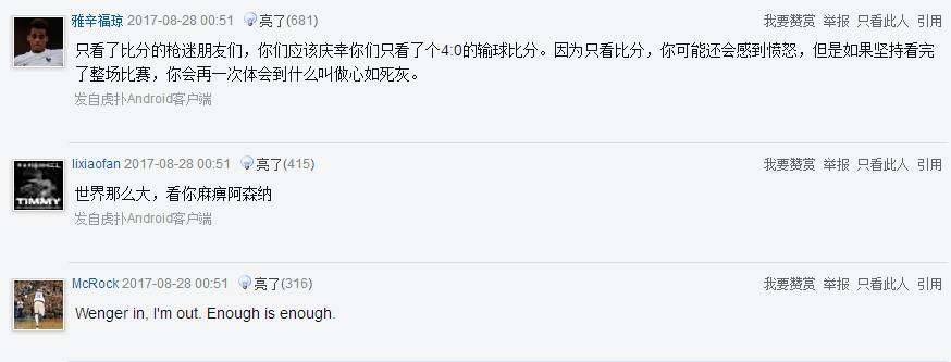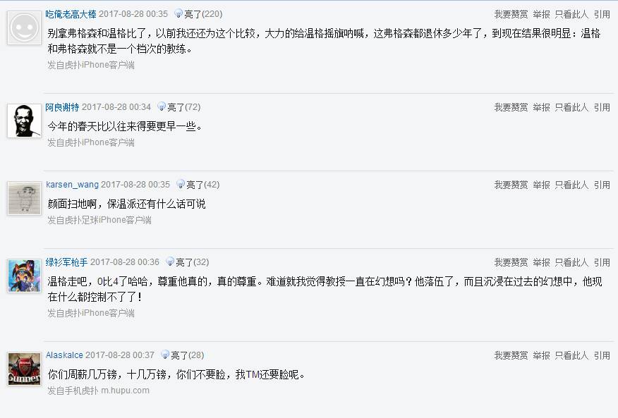 有人猜測可能是溫格和高層產(chǎn)生了矛盾,但是不管怎樣,賽季伊始就遭遇潰敗,球員離隊傳聞紛飛,球迷高舉的“wenger out”的標語可能很快就要實現(xiàn)了......