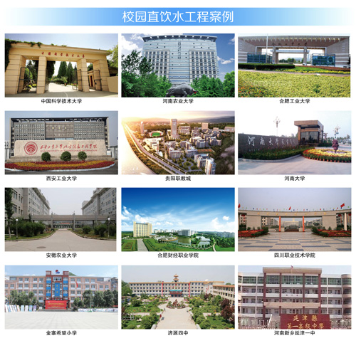 \u00A0\u00A0\u00A0\u00A0榮事達(dá)長期以來致力于發(fā)展校園直飲水,多年來憑借著優(yōu)質(zhì)產(chǎn)品、專業(yè)設(shè)計、先進(jìn)模式、高端服務(wù)領(lǐng)航業(yè)界,在多項大型校園直飲水工程投標(biāo)項目中脫穎而出,承建了中國科學(xué)技術(shù)大學(xué)、合肥工業(yè)大學(xué)、河南大學(xué)、貴陽職教城等數(shù)千所學(xué)校的直飲水工程,呵護(hù)百萬師生。榮事達(dá)將不忘初心,繼續(xù)為校園師生締造最為理想的健康飲水環(huán)境!