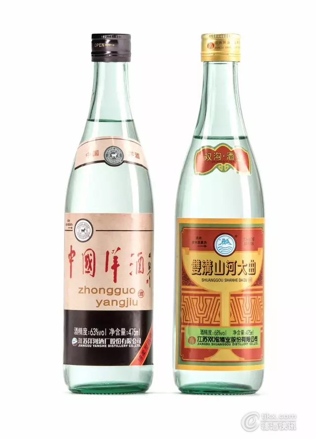產(chǎn)品采用禮盒包裝,兩瓶1盒,一瓶63度洋河“中國(guó)洋酒”復(fù)刻版475ml(原63度洋河大曲)、一瓶68度雙溝傳統(tǒng)“山河大曲”復(fù)刻版475ml。