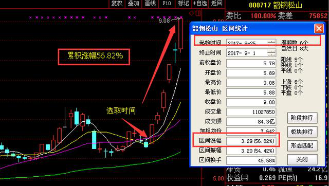 韶鋼松山也是在8月24日選取出來,當時也是在朋友圈中有詳細的講解的,想了解的可以去朋友圈查看,選取出來后直接進入快速的拉升達到目前6天累計漲幅56.82%,想學習這套方法的朋友可以去朋友圈中查看!