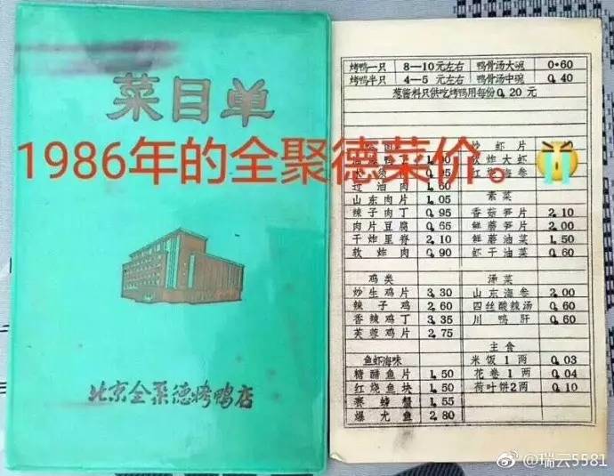 網(wǎng)友瑞云5581爆料,1986年的全聚德的菜單