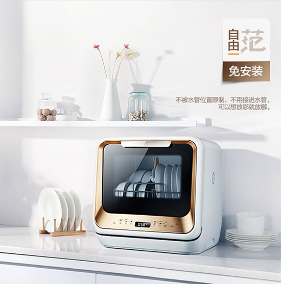 美的 M1免安裝洗碗機(jī)就是一款特別符合中國家庭使用習(xí)慣的洗碗機(jī),獨(dú)特的免安裝設(shè)計(jì)讓你抱回家里就能使用,無論你是租房族、已婚人士都非常方便。香檳金的配色很高級,跟多種裝修風(fēng)格都能完美融合,體積也非常小巧,可以容納四套餐具外加一些湯匙被子等小件。