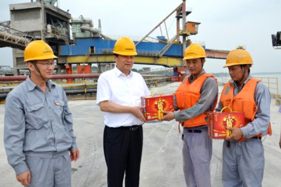 高書記一行深入生產(chǎn)一線,查看了礦山爆破開採運(yùn)輸、熟料?燒、水泥發(fā)運(yùn)和碼頭等生產(chǎn)工序運(yùn)行情況,看望慰問生產(chǎn)一線的崗位員工,給廣大職工送清涼,並叮囑公司班子抓好安全生產(chǎn),關(guān)注員工后勤生活。