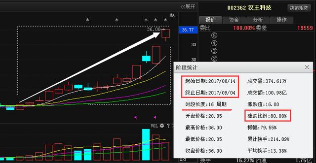 漢王科技隸屬人工智能,8月14號用方法選出在朋友圈講解,截止目前短短16個周期漲幅也是超過了80%,,試想一下,如果你也是本人朋友圈的粉絲,看到后及時進場,是不是也能抓住這80個點的漲幅呢?如果你還不是本人朋友圈的粉絲,那我也只能呵呵一笑了。那么這里也是恭喜關(guān)注了筆者并抓住了這2只股票的粉絲朋友。如果你連這2只股票還沒抓住,那我只能說你不上心。